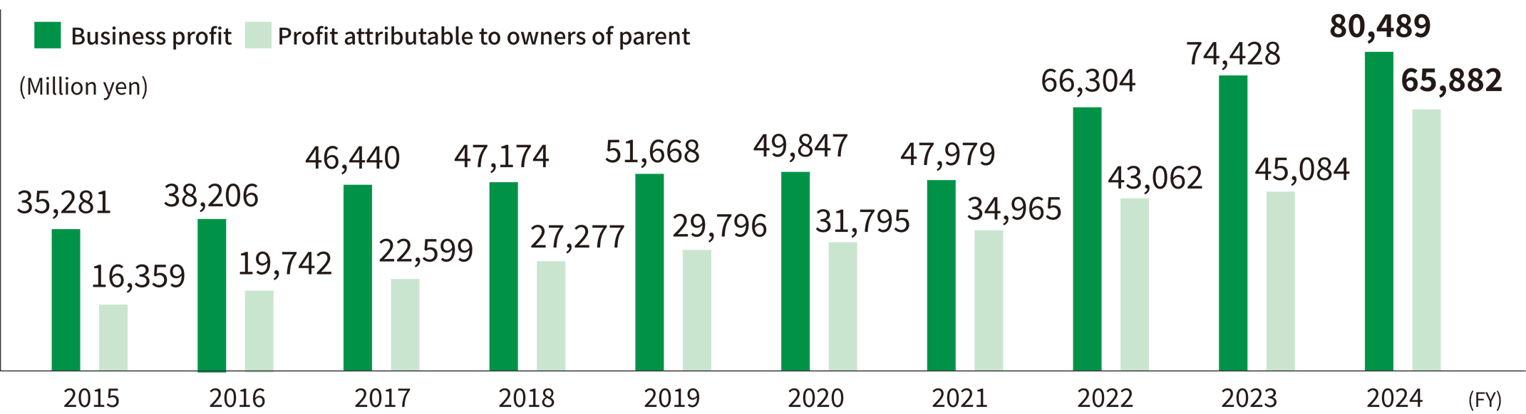 We significantly exceeded our targets for the previous medium-term business plan, which ran through fiscal 2024, ending on December 31, 2024. We achieved our highest ever operating revenue, operating profit, business profit, and ordinary profit, and profit attributable to owners of parent increased for the ninth consecutive year.
