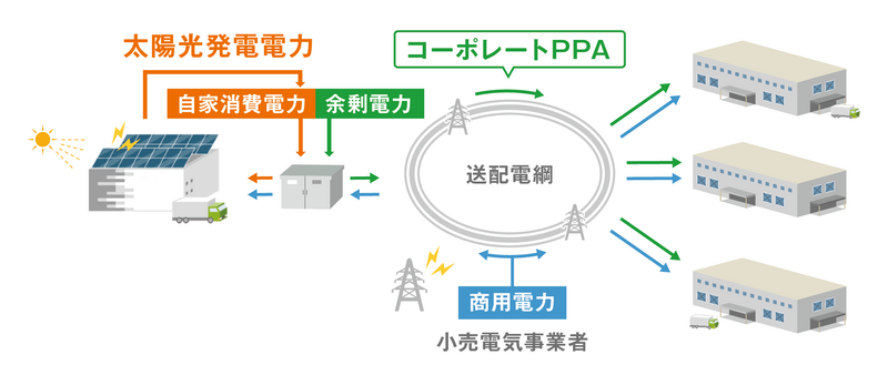 Power Purchase Agreementの略。企業・自治体が保有する施設の屋根や遊休地を事業者が借り、無償で発電設備を設置。発電した電気を企業・自治体が施設で使う取り組み。