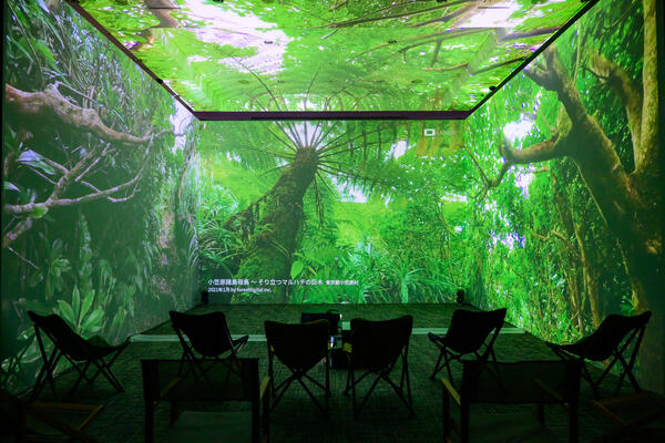 フォレストデジタル株式会社が提供する「uralaa(ウララ)」を会場内に設置しました。世界初のクラウドベース空間VR技術により、ゴーグル不要の没入体験を提供するイマーシブ空間映像技術で、来場者は大都市東京に居ながらも、光と音の演出により森林浴を楽しむことができ、リジェネラティブな営みに欠かせない日々の生活と自然資本との密接なつながりを意識するきっかけを提供しました。