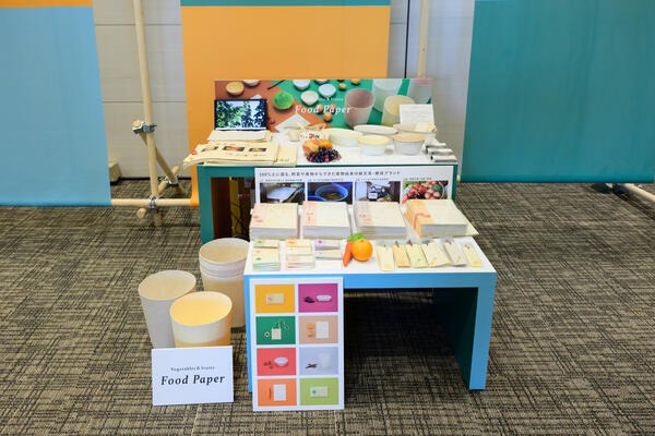 越前和紙の老舗である五十嵐製紙が展開する廃棄される野菜や果物から作られる紙文具Food Paperが展示されました。